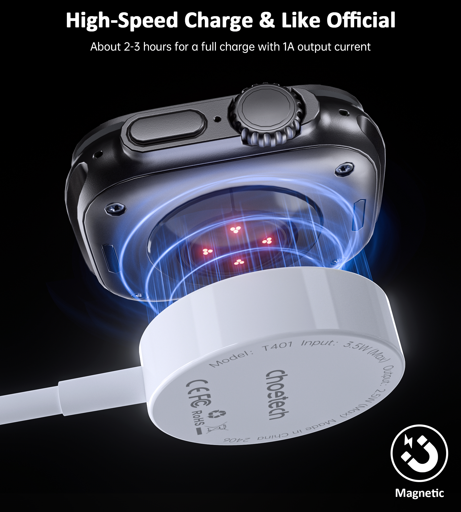T401-Choetech Magnetic Charging Cable for Apple Watch Charger--USB port