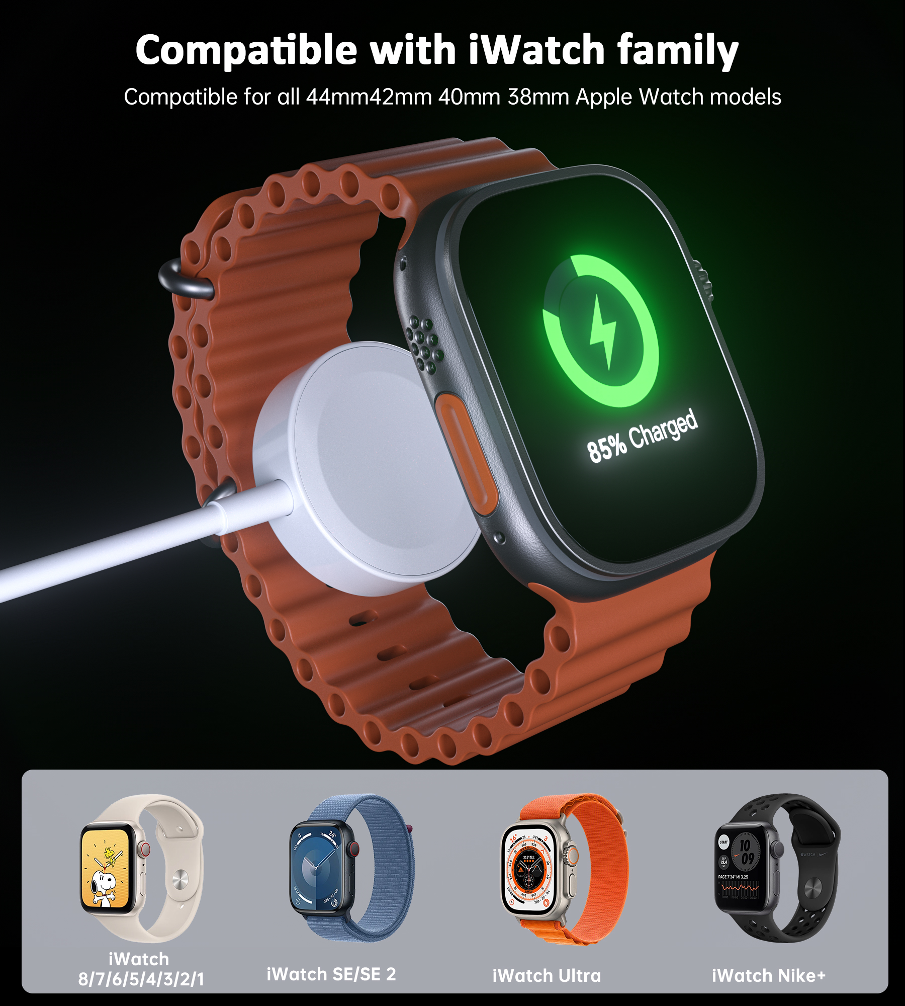 Ultra/9/8/7/6/SE2/SE/5/4/3/2/1 (including the 38 mm/40 mm/41 mm/42 mm/44 mm/45 mm Version) |