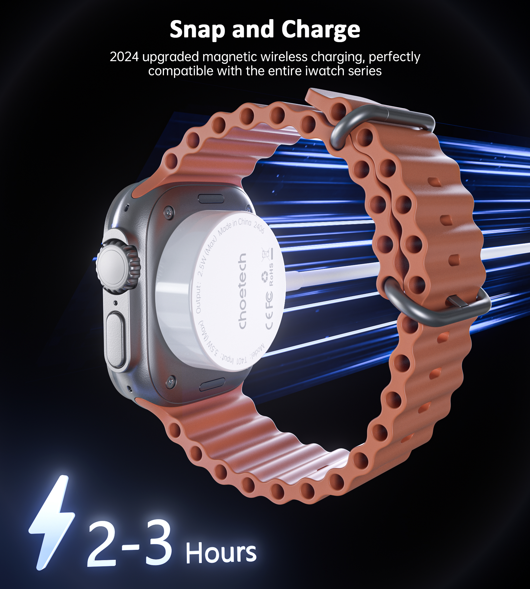 T401-Choetech Magnetic Charging Cable for Apple Watch Charger--USB port